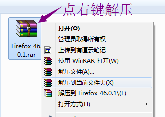 下载完成请把下载的文件解压,双击Firefox_46.0.1.exe安装: