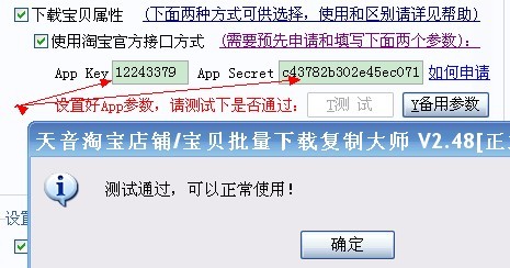 ★请留意下APP参数使用次数限制,API调用量限制为5000次/天,如果您下载的宝贝数量接近(或大于)5000个,请申请多个APP同时使用,软件的选项里面添加 APP备用参数 再下载。