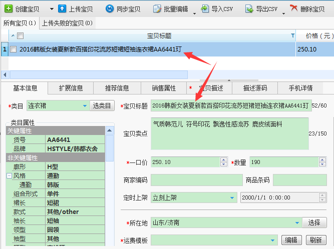 使用宝贝列表标题:下载宝贝时不需要下载原标题,只需要使用列表的标题。