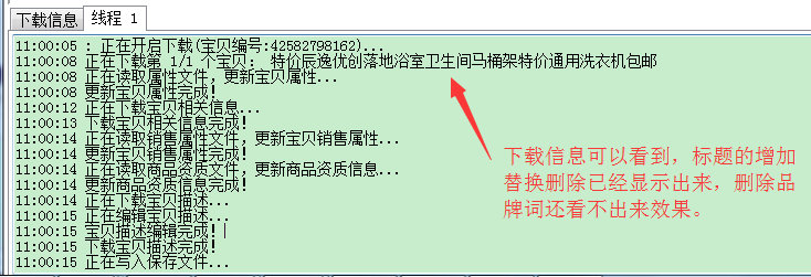 下载宝贝时查看下载信息,标题的增加替换删除功能已经起了效果,但是品牌词仍然存在