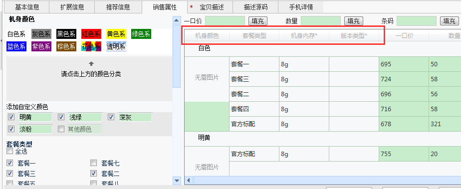 再导入淘宝助理可以看到必填属性都填写完整,“网络类型”自动选择了原来销售属性里面的第一个: