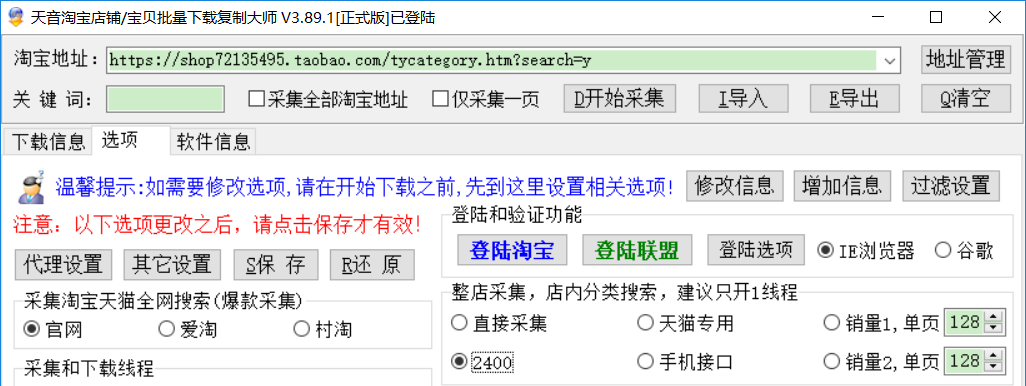 —>第一步:点击“店铺搜索”,如果页面显示出"url":"",请复制这个链接的内容到另一个页面打开,滑块成功后回到该页面;如果页面显示的是数据,可直接跳过这一步