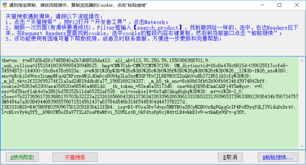 天猫搜索更换cookie教程