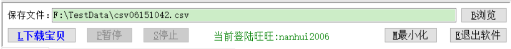 —>第三步:点击“下载宝贝”,这一步才是真正下载宝贝详细信息,并将下载成功的数据一条条写入“保存文件”,不需要再导出文件,这是区别于其它同类软件的一个地方。