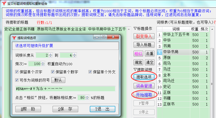 固定词根:跟系统词典没关系。单独提取,不再提取子词根,无限字数。适用于品牌,公司的商标、logo、个性签名、物品固定名称等,比如“中华上下五千年”,软件不会再拆分成“中华”、“上下”、“五千年”等。