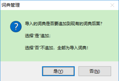 词典可从外部导入,导入时会提示是否追加到原词典后面;