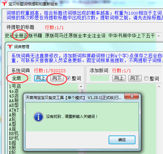 仔细检查标题,缺少几个词“全册”、“全注”、“全译”,加入“添加新词”里面