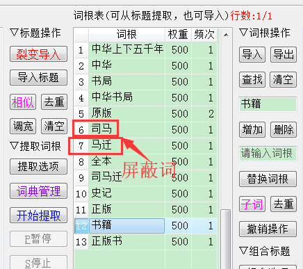 另外需要屏蔽一些词,可加入“屏蔽词根”;也可以使用删除子词根功能
