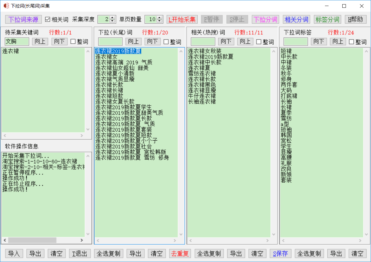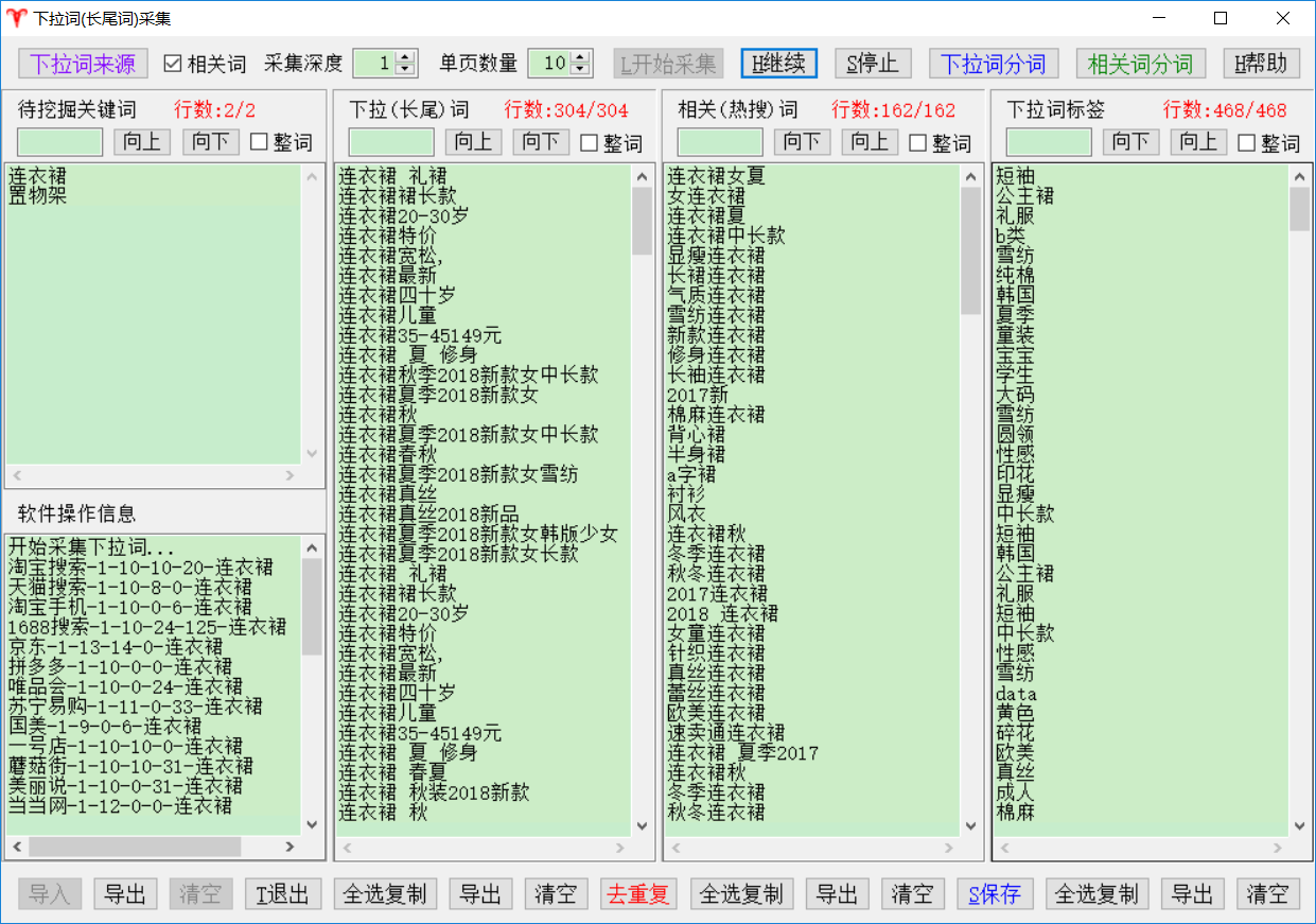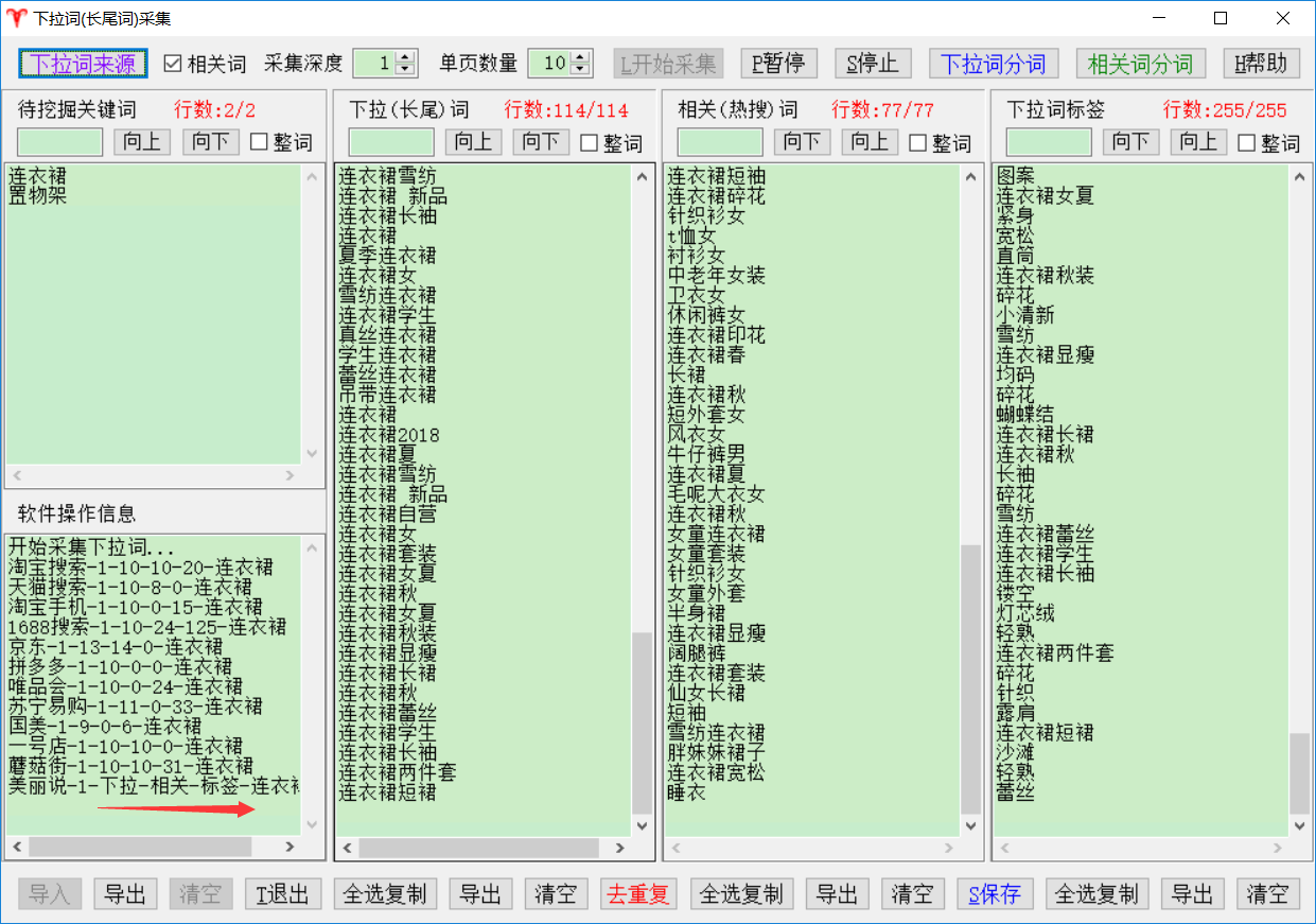 采集深度是指采集到第几批下拉词,采集深度2的效果请看下面的截图