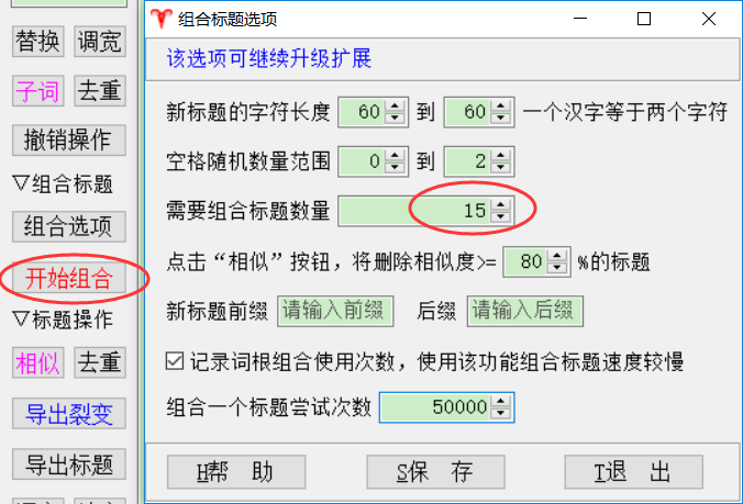下面举个例子说明该功能的一个用法,提取待裂变标题除了可以直接采集标题之外,还可以通过采集下拉词、分词并组合成新的标题。