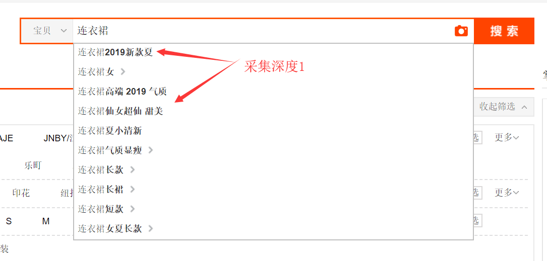 淘宝搜索-采集深度-下拉词数量-相关词数量-标签数量-关键词