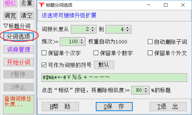 采集结果似乎有很多不相关的词汇,特别是相关词,可以先将全部词汇加入分词,然后在词根表进行检查,删除不相关词根