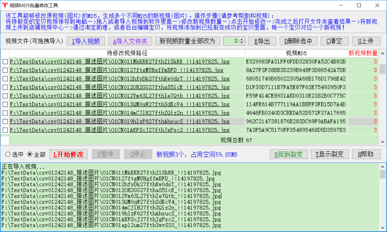 软件也可以导入图片进行裂变,修改图片MD5生成多张不同MD5的图片