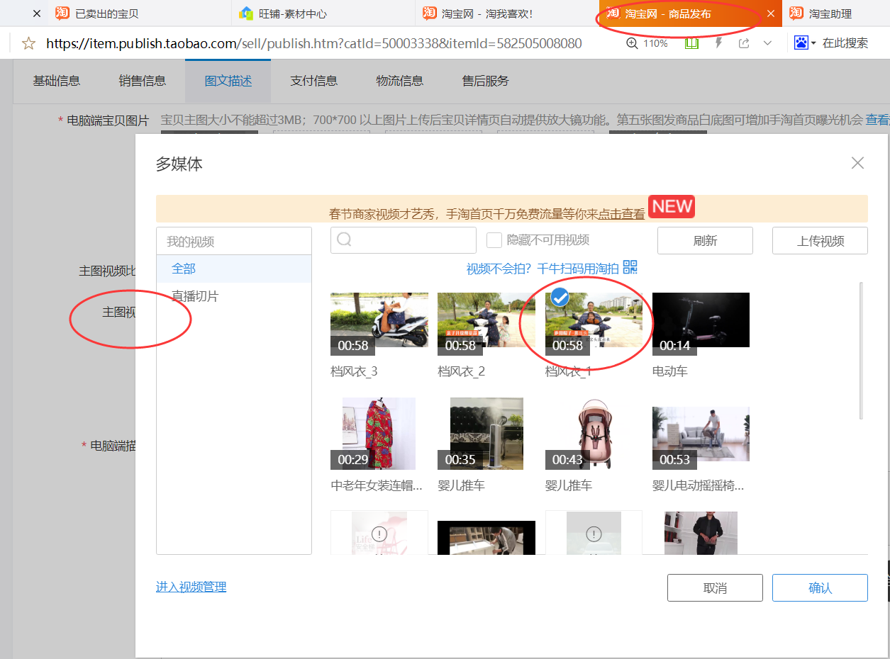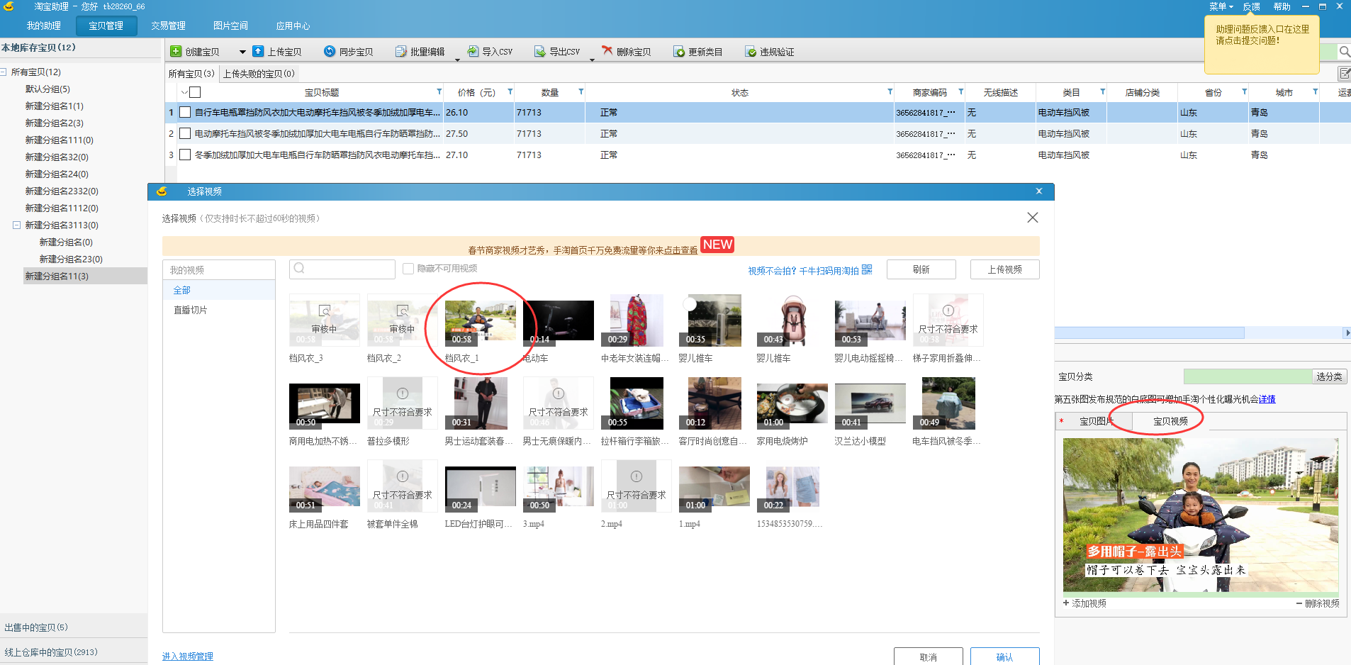 ▼如果裂变的宝贝已经上传成功,也可以在店铺后台编辑宝贝,打开主图视频,选择刚刚上传的新视频