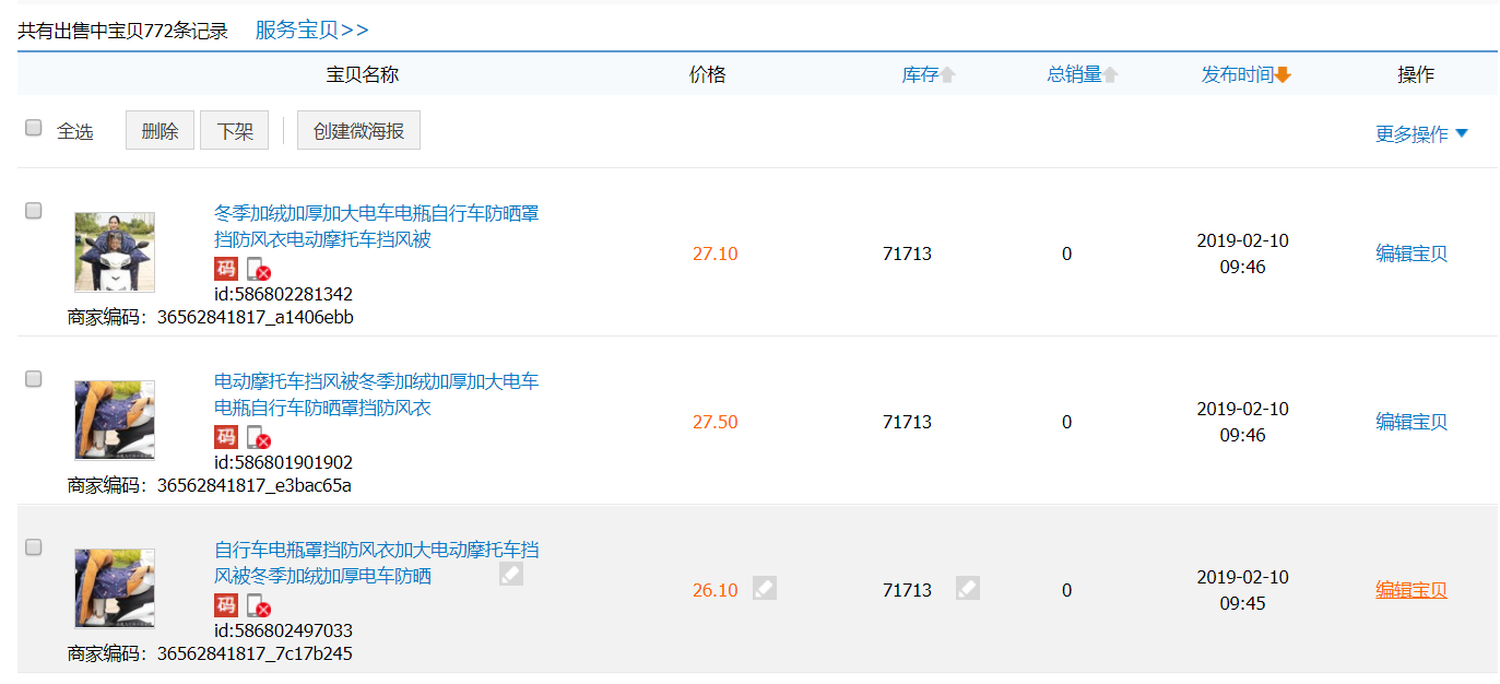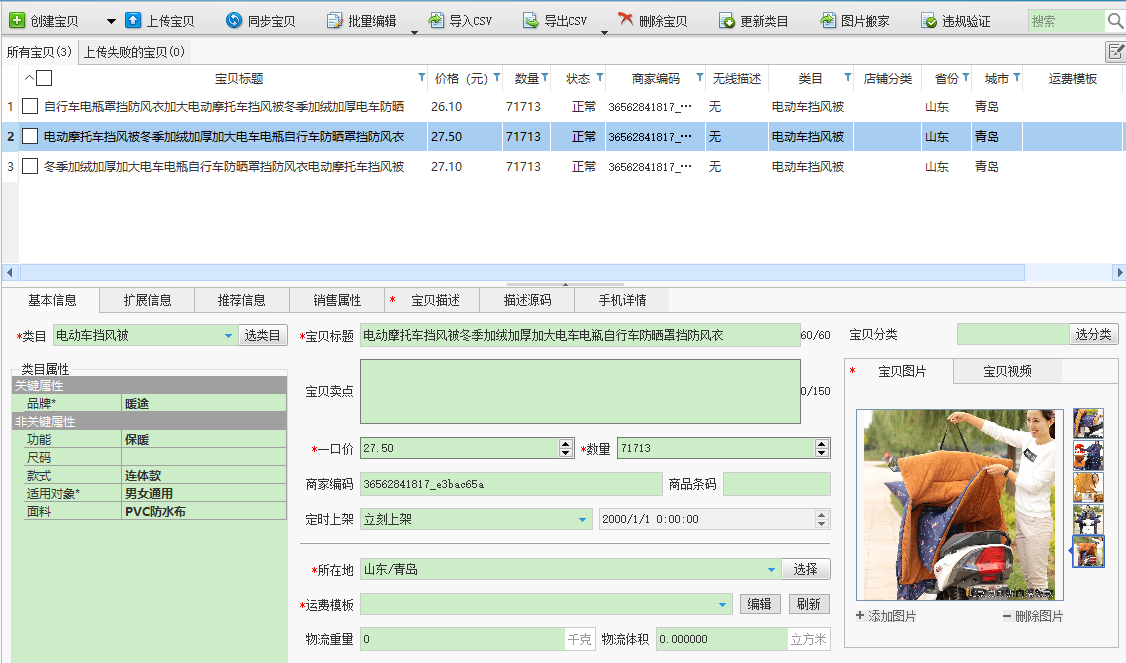 比如下面这个宝贝,我们用裂变工具裂变成三个宝贝并导入助理