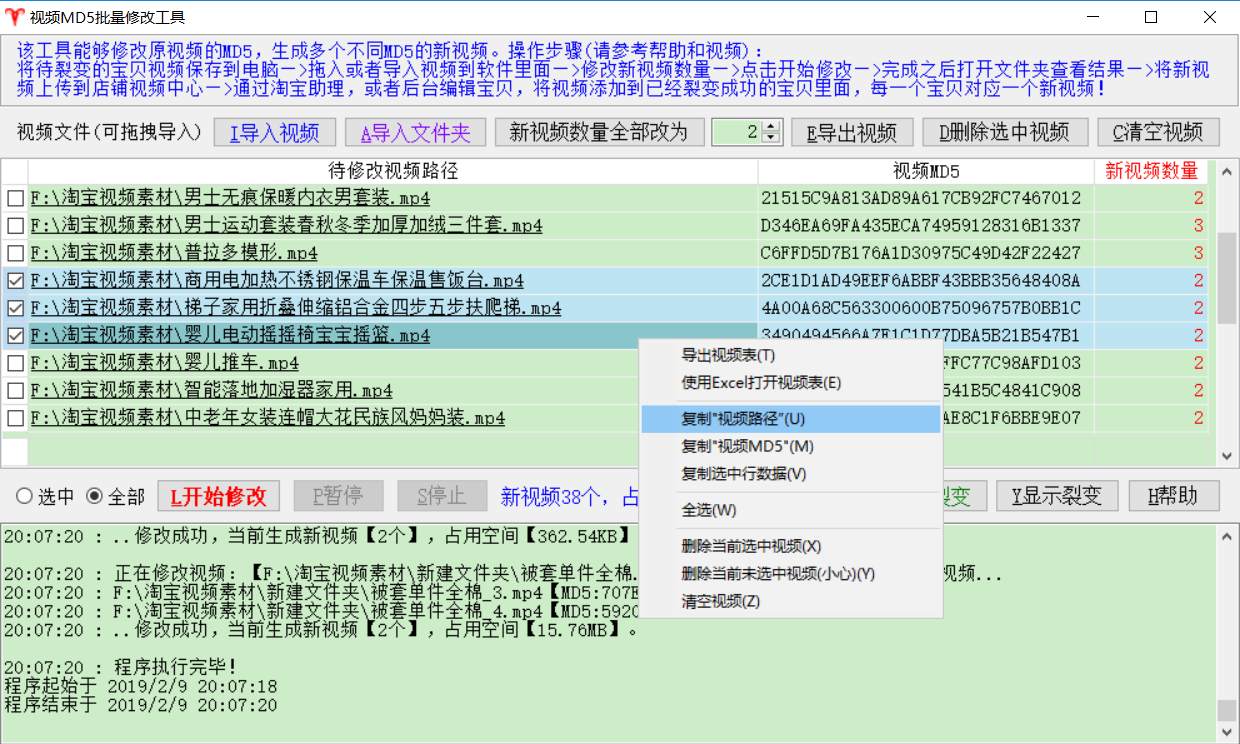 该软件能够修改原视频的MD5,生成多个不同MD5的新视频。软件不但可以用于裂变视频,还可以裂变图片,裂变任意电脑的文件。