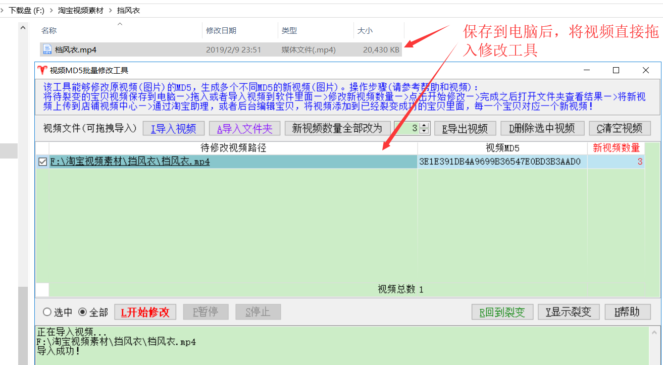 ▼视频保存到电脑之后,将视频直接拖入修改工具
