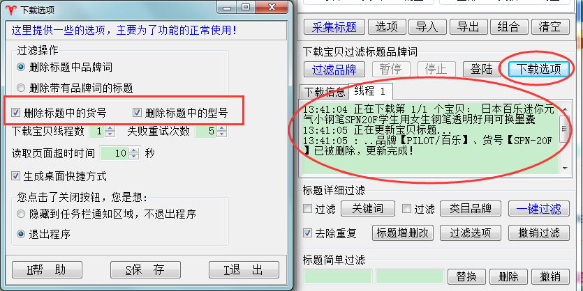 ▼如果我们批量去过滤标题,过滤信息如下所示,有些标题只过滤了品牌,有些带有货号和型号的一起被过滤。