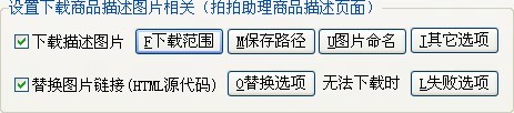 设置下载商品描述图片相关(拍拍助理商品描述页面)注意:软件默认关闭该功能,需要“下载描述图片”请按下图示例勾选该功能: