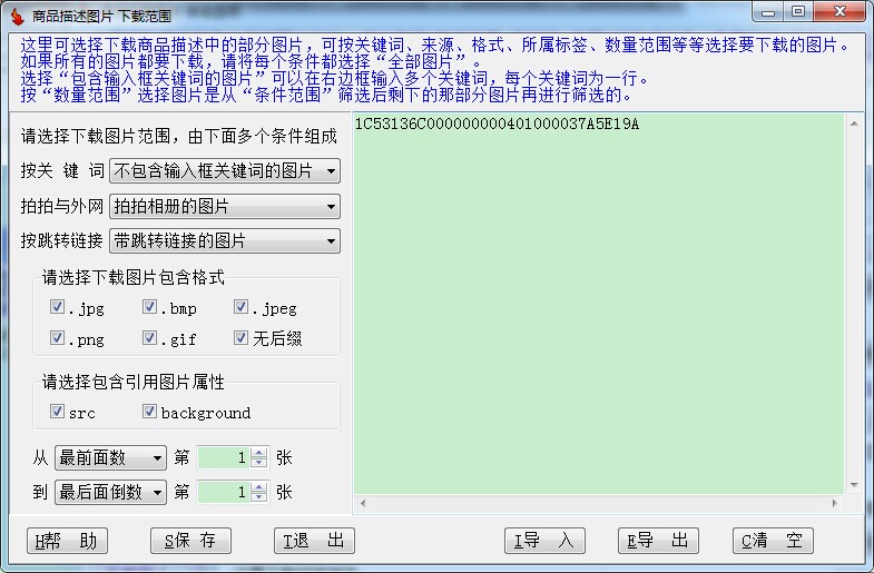如下图所示的下载范围(即下载的图片需满足这几个条件)为:包含输入框两个关键词 + 来自拍拍相册 + 该图片带跳转链接,其它 包含格式 和 引用属性 已经全选不用考虑在内。