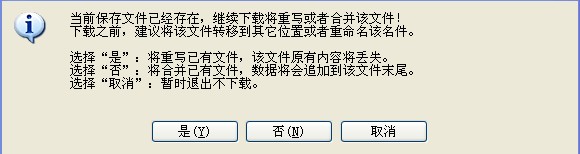 中途停止后:可以点下“下载商品”,软件会给出以下提示,选择“否”即是继续下载。