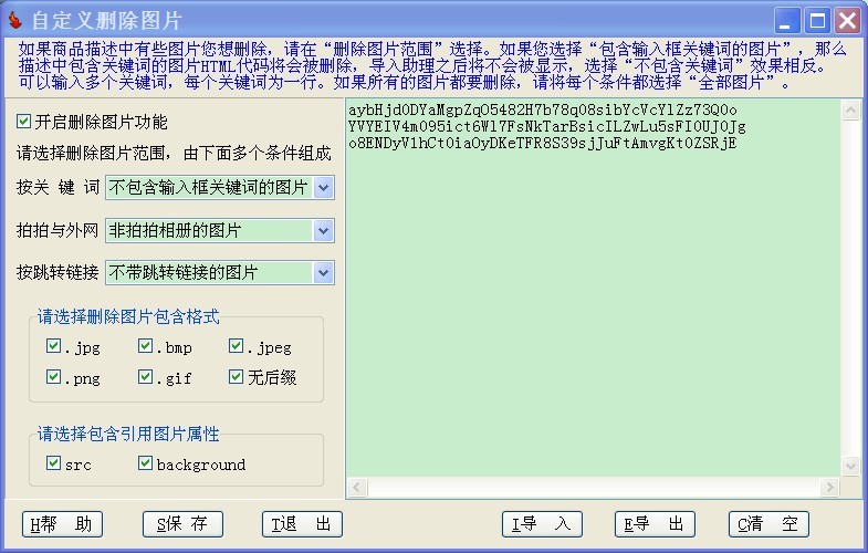 删除跳转链接(包含文字、图片跳转):如果下载的商品描述里面包含了很多链接,顾客浏览时点击将会跳转到原来的店铺,这样会影响正常库存,选上该项能将附在文字、图片上面的跳转链接通通去掉;