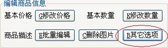这里您可以设置商品描述其它常用选项。该功能未来升级可继续扩展,目前只提供部分选项。