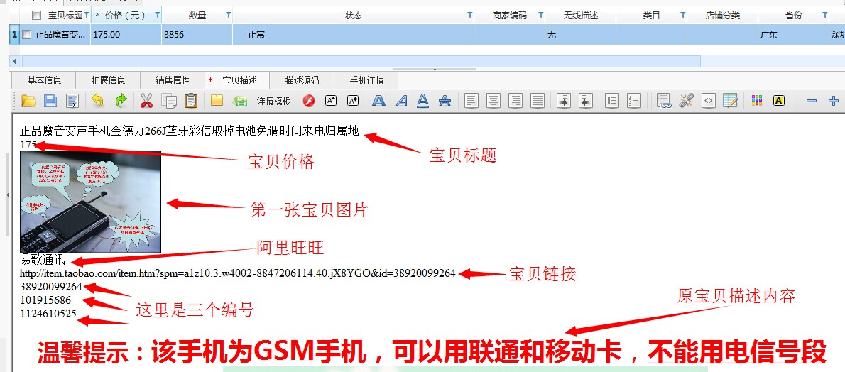 ③商品描述不带有目标店铺的相关模板、图片、跳转链接、联系方式等等。