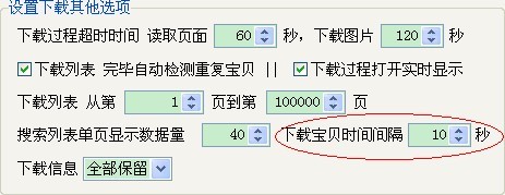 这个功能可以控制每个商品下载成功后,间隔一段时间再下载另一个商品。软件默认设为0秒,全速下载。开启之后(大于0秒),多线程功能实际上相当于单线程的效果,建议只开一个线程下载即可,这样无需其它线程一直等待,节省资源。