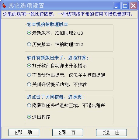 这里的选项一般比较固定,比如助理版本,更新提示,关闭最小化托盘等,一些选项按平常的使用习惯设置即可。