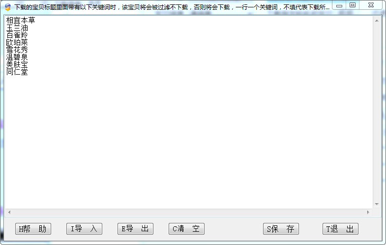 这个功能在“自定义字段”里面,下载的宝贝标题里面带有以下关键词时,该宝贝将会被过滤不下载,否则将会下载,一行一个关键词,不填代表下载所有宝贝。