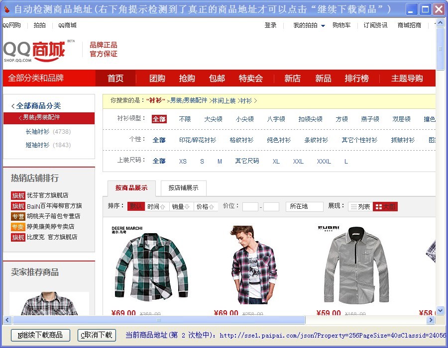 QQ网购、女装、男装、数码、运动、美妆、家居、美食、母婴、箱包、手表、饰品、图书,目前下载这几类地址都无法直接得到商品信息,如果您下载的地址是其中的一种,软件的执行步骤如下: