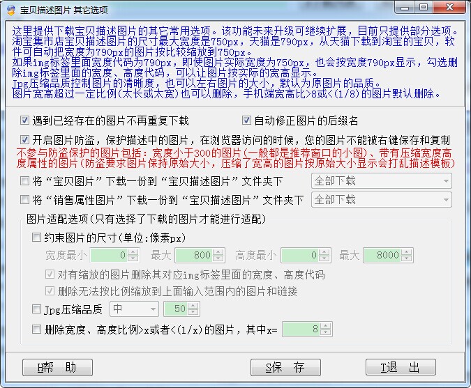 这里提供下载商品描述图片的其它常用选项。该功能未来升级可继续扩展,目前只提供部分选项。