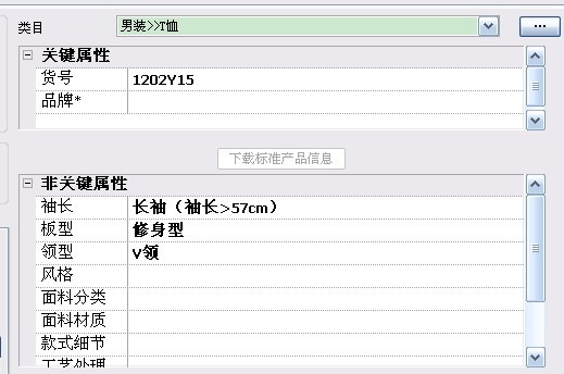 使用接口方式下载宝贝属性,可以100%返回淘宝官方的结果,但是并不表示这个结果(CSV数据包)使用淘宝助理就能100%成功上传。目前发现一种情况,是非得手动调整属性不可的,估计市面上任何软件都无法将此类宝贝的属性下载完整,除非有自动选择属性功能。这种情况出现的概率要看具体的店铺,从宏观角度来讲,淘宝大部分的店铺都是正常的,少数的店铺由于部分宝贝的数据陈年已久,会出现下面所述的情况,概率在5%左右:
