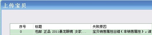 解决方案:使用我们的软件下载的一批宝贝,导入到淘宝助理之后,先把宝贝上传,对于上传失败的宝贝,我们再作进一步分析,看看是否是这种情况导致的?(使用淘宝官方接口方式下载宝贝一般上传是不会失败的,只有遇到失败的才需要进一步分析)