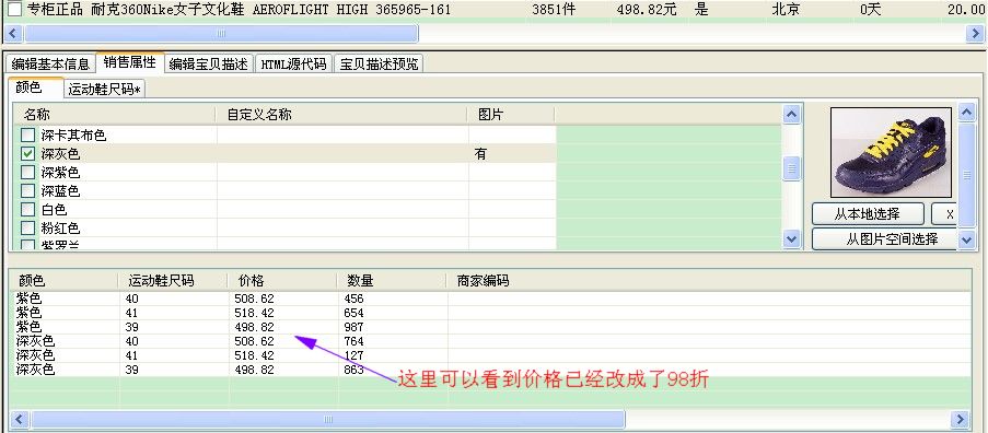 2.下载的宝贝全有销售属性,只要修改销售属性价格(数量),不需要再修改修改基本价格(数量),程序会根据上面的注意点将“基本价格”(数量)修正;