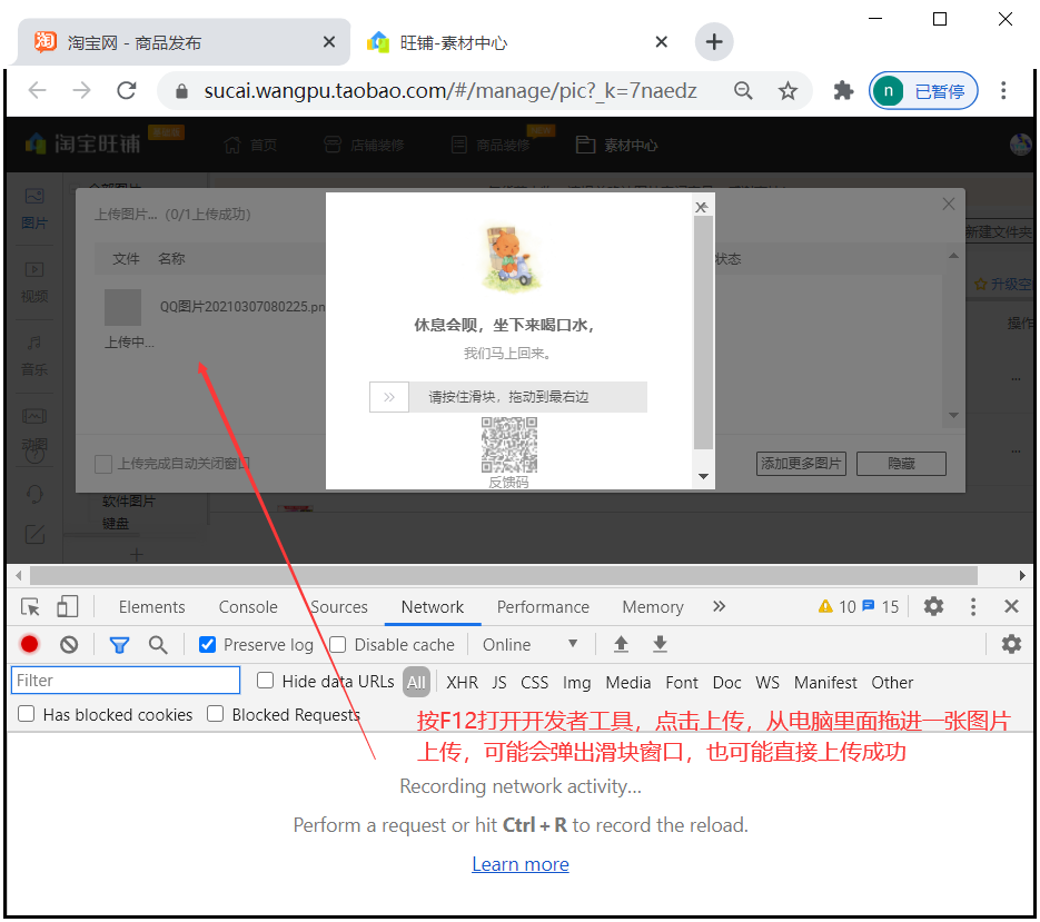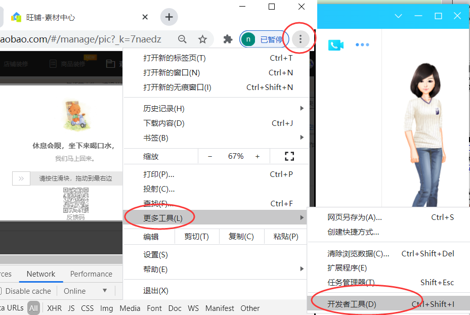 第三步,打开开发者工具,在浏览器按F12即可,也可以点击菜单打开,再按截图操作;