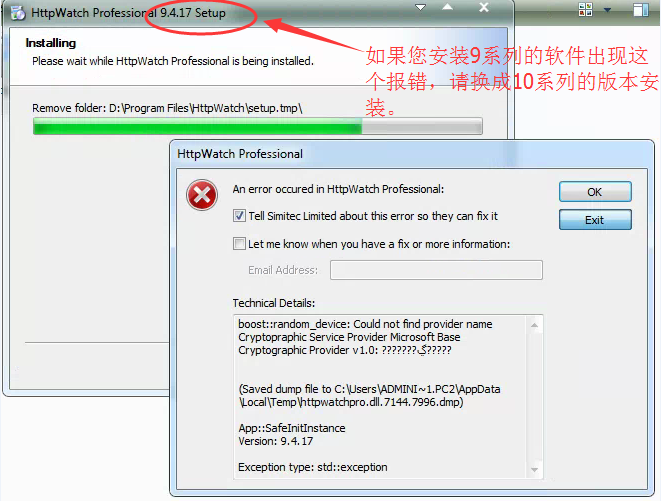 HttpWatchV9.4.17.rar,文件是26.6MB,WinXP系统请安装这个版本,支持IE6到IE11,但是有些64位的系统安装过程会报错(XP系统不会报错),用户中用这个安装在Win7到Win10系统会报错的有百分之二三十,请谨慎选择下载!