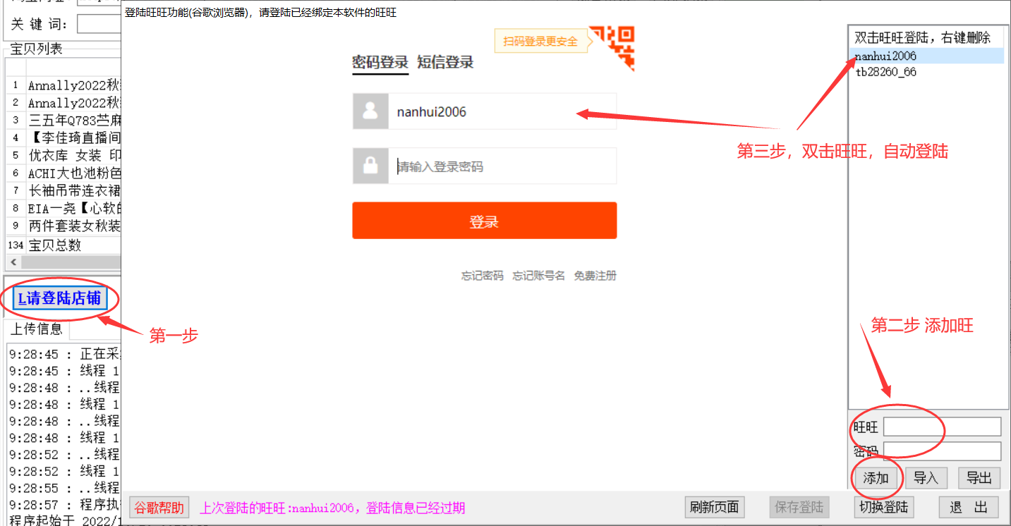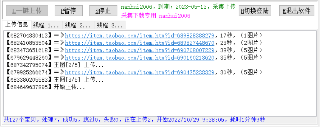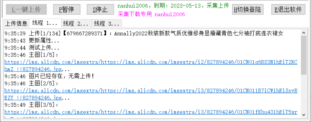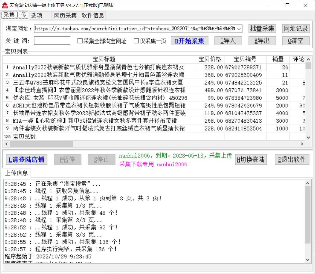 简要步骤:输入淘宝网址—>点击“开始采集”—>登陆要上传的店铺—>再点“一键上传”