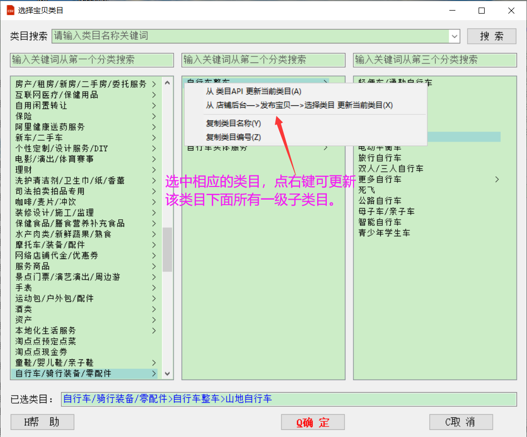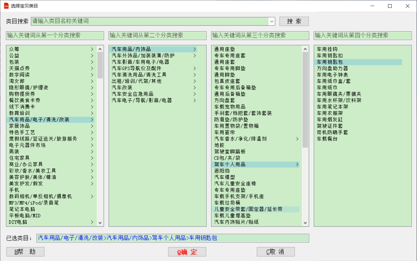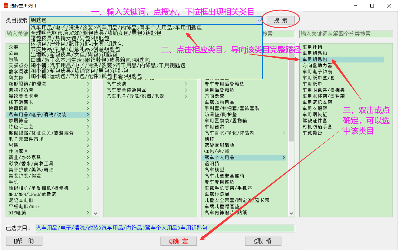 该功能可查看淘宝类目树、搜索类目和更新类目等。