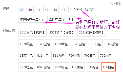 ◆旧版本颜色尺码的别名自动转移到新版本的属性值备注,自动截取前面8个文字,也即保留16个字符;